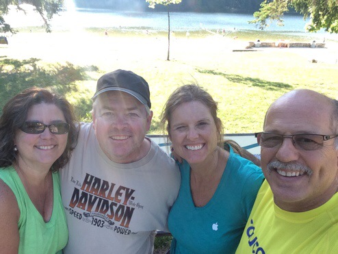 Two bikers, the Hanrahans and us the Risaobert. Lovely day. Perfect weather –